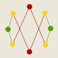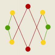 In Don't Cross The Line the name says it all: the crossing lines are not to be connected, but to be parted. A reverse puzzle that requires thinking, and moving the lines in the right order, to solve the interwoven pattern.